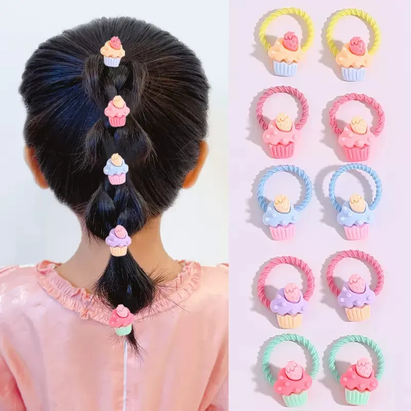 10PCS/Set Cute Cartoon Flower Animal Small Elastic Hair Bands For Girls Ponytail Hold Lovely Rubber Band Kids Hair Accessories