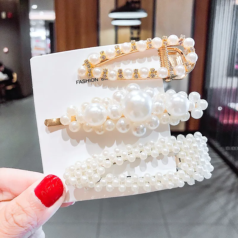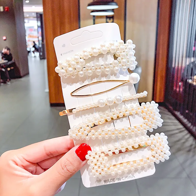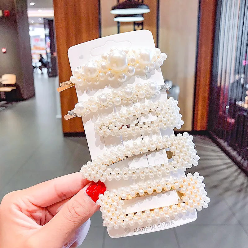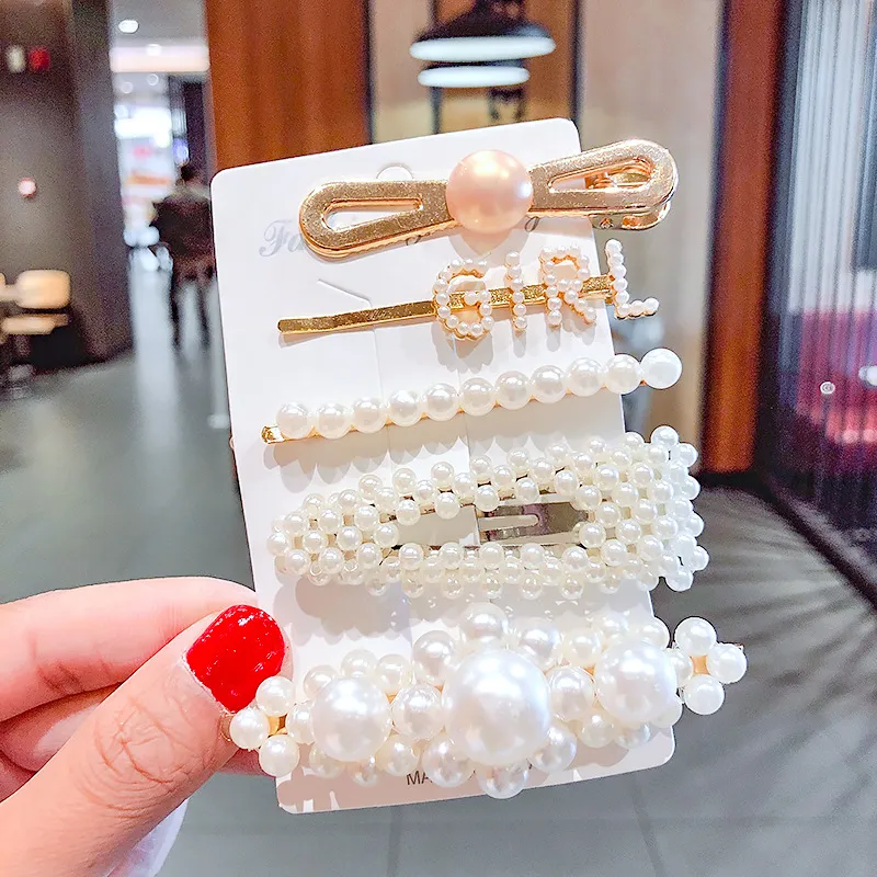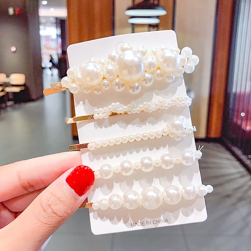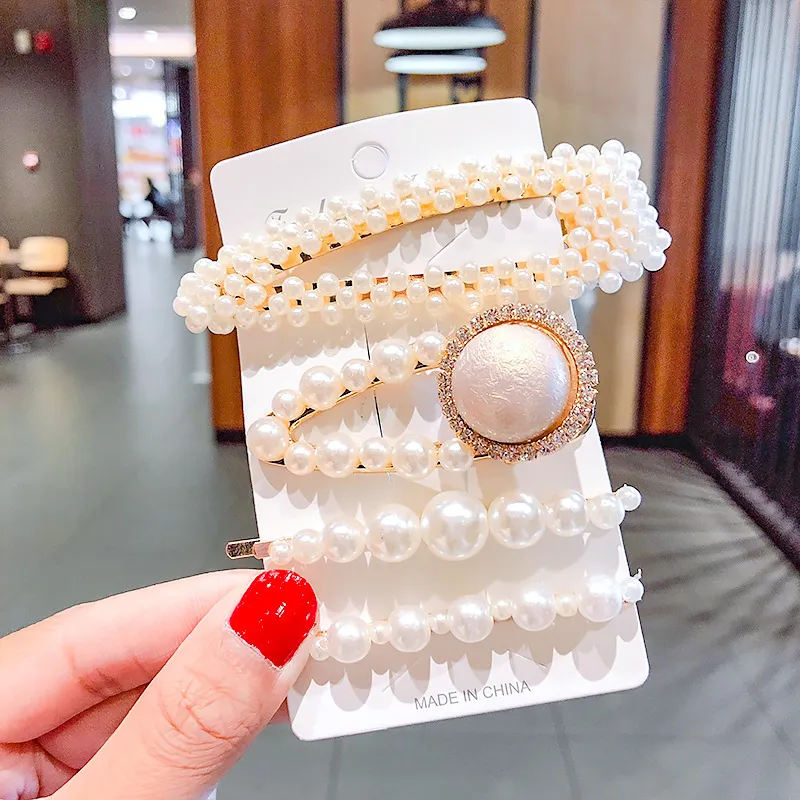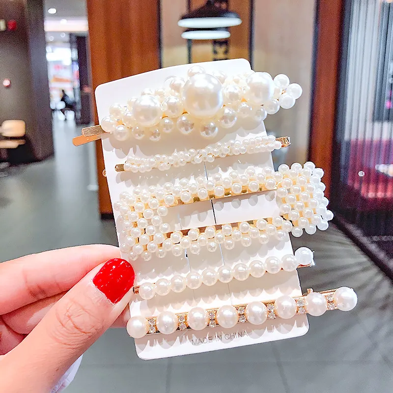 2020 Ins Fashion 1Set Women Girls Cute Pearls Hair Clips Sweet Headwear Hair Ornament Hairpin Elegant Barrette Headband Hair Accessories Wholesale
