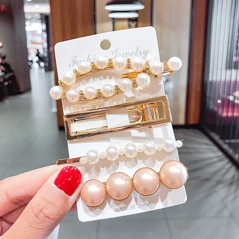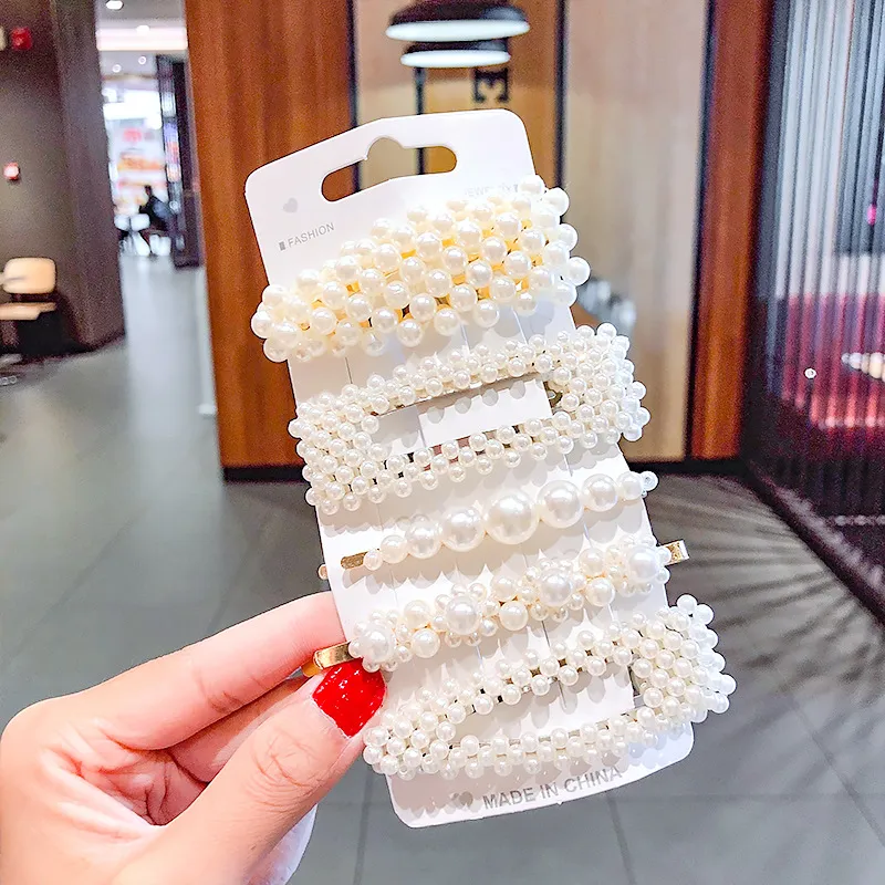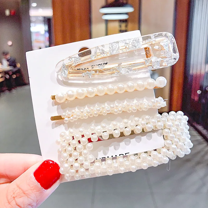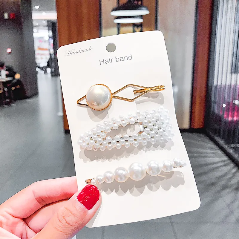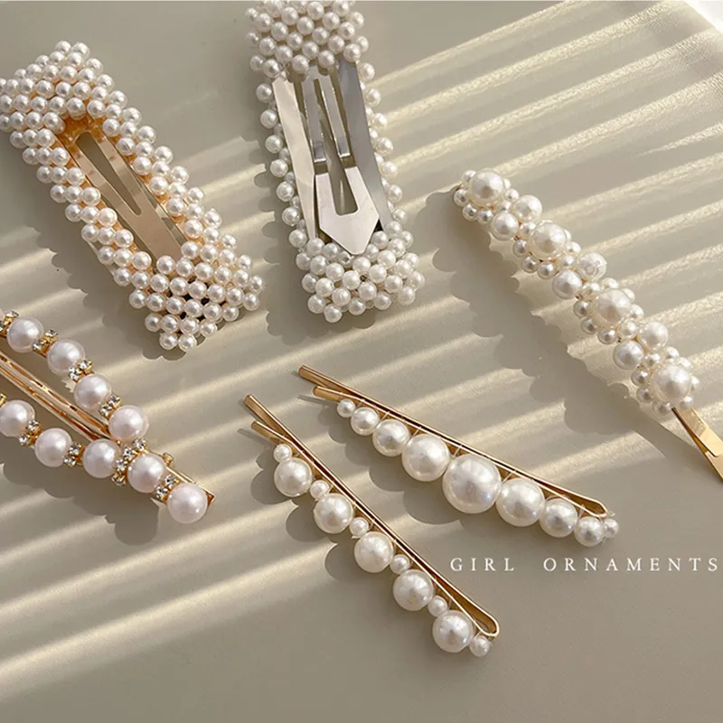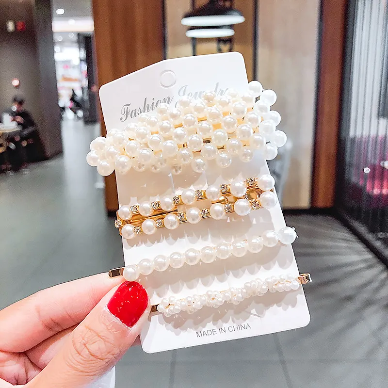 2020 Ins Fashion 1Set Women Girls Cute Pearls Hair Clips Sweet Headwear Hair Ornament Hairpin Elegant Barrette Headband Hair Accessories Wholesale