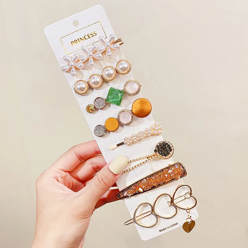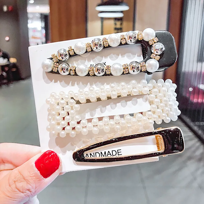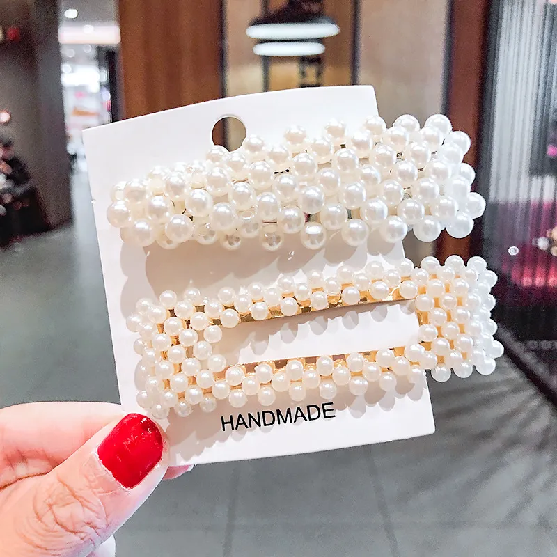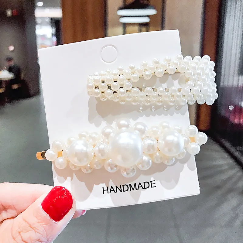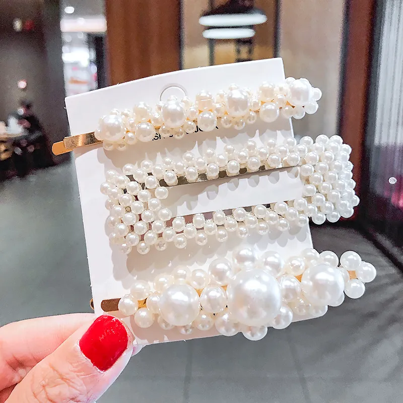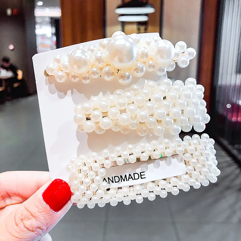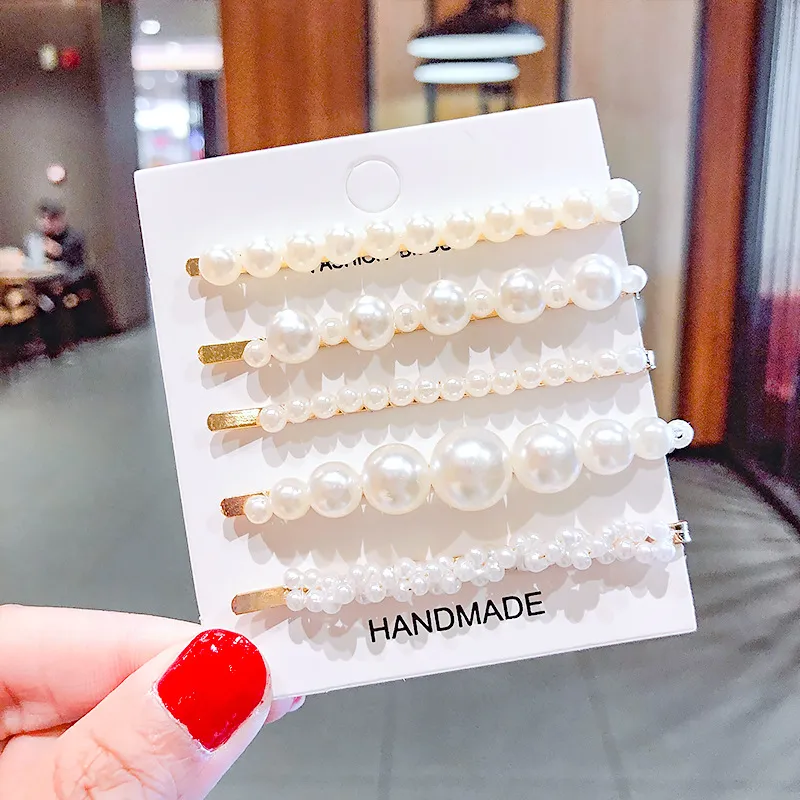 2020 Ins Fashion 1Set Women Girls Cute Pearls Hair Clips Sweet Headwear Hair Ornament Hairpin Elegant Barrette Headband Hair Accessories Wholesale