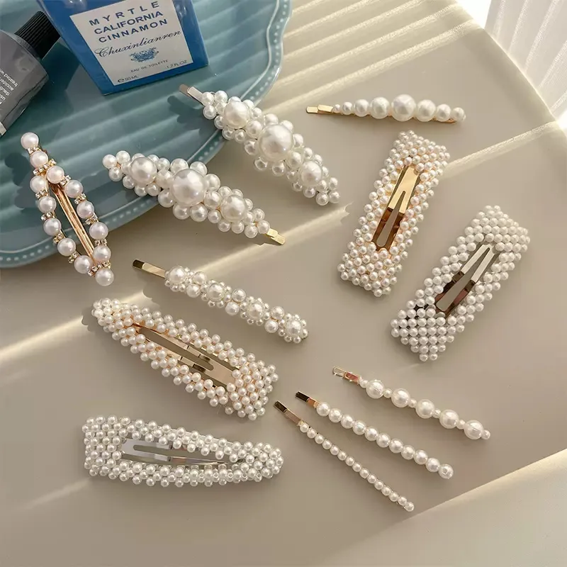 1Set Women Girls Elegant Full Pearls Geometric Hair Clips Sweet Hair Ornament Hairpins Barrettes 2023 Fashion Hair Accessories